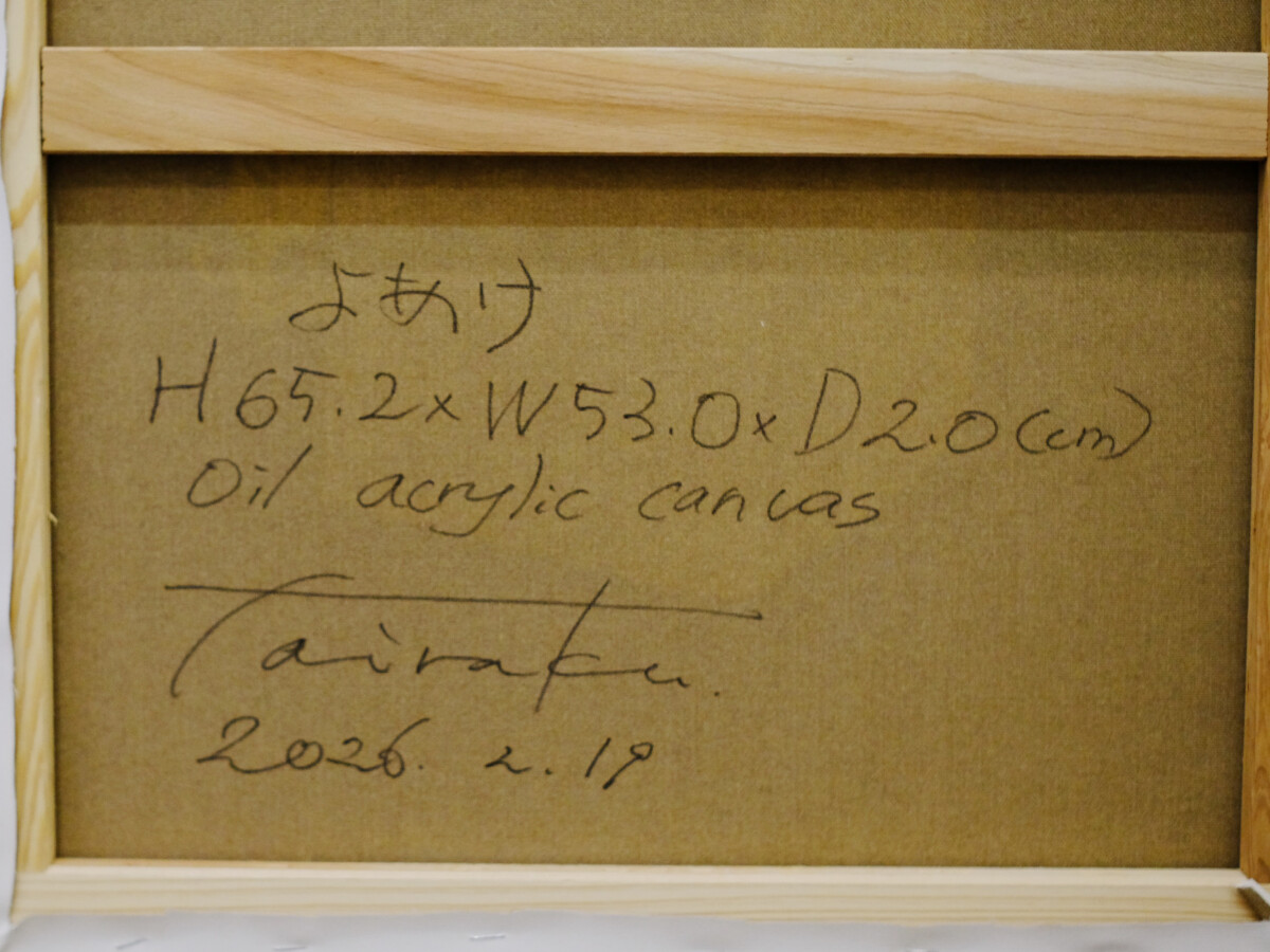 よあけ ¥198,000 (税込) Artist タイラクルカ Title よあけ Year 2026 Size 652 x 530 x 20 mm Medium Oil, Acrylic on canvas よあけ個 お買い物カゴに追加 カテゴリー: タイラクルカ 説明 説明 Artist タイラクルカ Title よあけ Year 2026 Size 652 x 530 x 20 mm Medium Oil, Acrylic on canvas 関連商品 くるま ¥198,000 (税込) お買い物カゴに追加 「袋越しのラブレター」 ¥114,400 (税込) 続きを読む 「偶像の母」 ¥114,400 (税込) お買い物カゴに追加 言いたいこと。 ¥440,000 (税込) お買い物カゴに追加 Tweet Share くるま 言いたいこと。